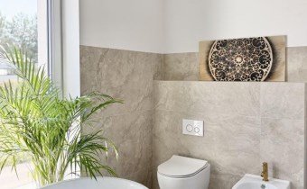 PARTER: narożny salon (22,66 m2) z wyjściem do ogrodu, połączony z widną kuchnią (6,41 m2), gabinet (8,19 m2), łazienka (3,33 m2), schowek (3,25 m2), komunikacja (3,75 m2), wiatrołap (2,35 m2), garaż (18,74 m2).