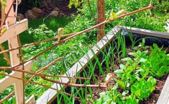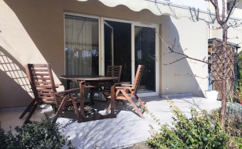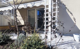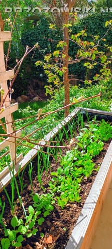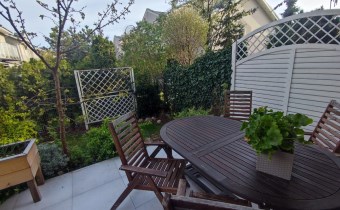 Dwa ogródki: pierwszy przed wejściem od strony ulicy (północny zachód), drugi z tarasem od strony ogródka (południowy wschód).