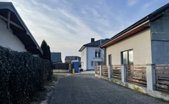 Duży ogród – do bliźniaka przynależy część działki o powierzchni ok. 400 m2 (cała działka ma powierzchnię 788 m2). Ogródek ogrodzony, teren przed budynkiem z kostki betonowej. Automatyczna brama wjazdowa. Wjazd przez drogę prywatną.