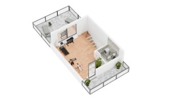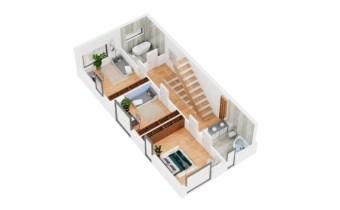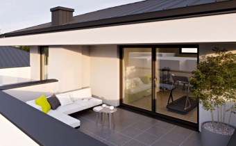 - dwa częściowo zadaszone tarasy znajdujące się na górnej kondygnacji, gwarantujące prywatność (łącznie ponad 30mkw),