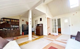 - poziom główny: w pełni otwarta przestrzeń z kuchnią, jadalnią i salonem z kominkiem