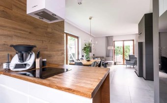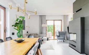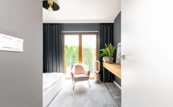 - nowoczesne wykończenie, neutralna stylistyka, duże okna,