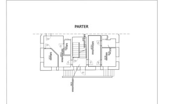 PARTER (48,78 m2): dwa niezależne wejścia, podzielony na dwie części (24,03 m2, 24,75 m2), pierwsza część - pokój, komunikacja, WC, druga część - pokój, komunikacja, WC.