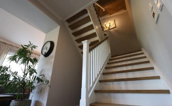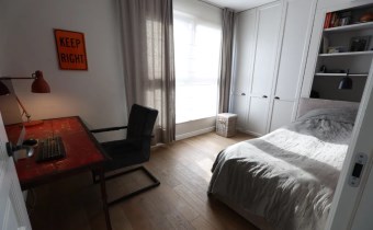 PIĘTRO: trzy sypialnie, dwie łazienki, garderoba, komunikacja.