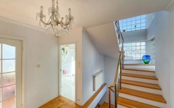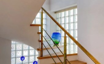 – Schody dębowe, z białego marmuru, poręcze ze szkła hartowanego