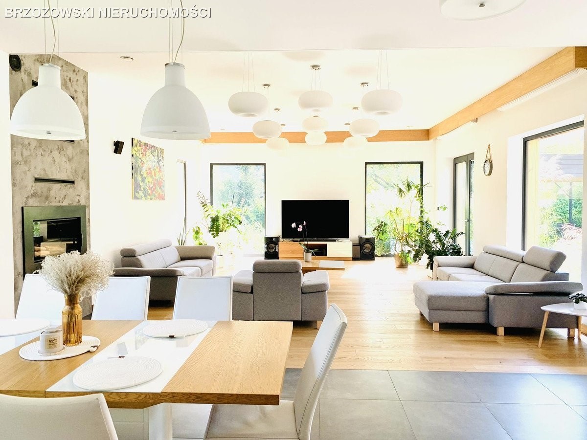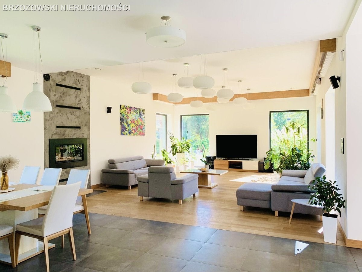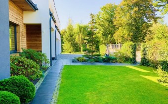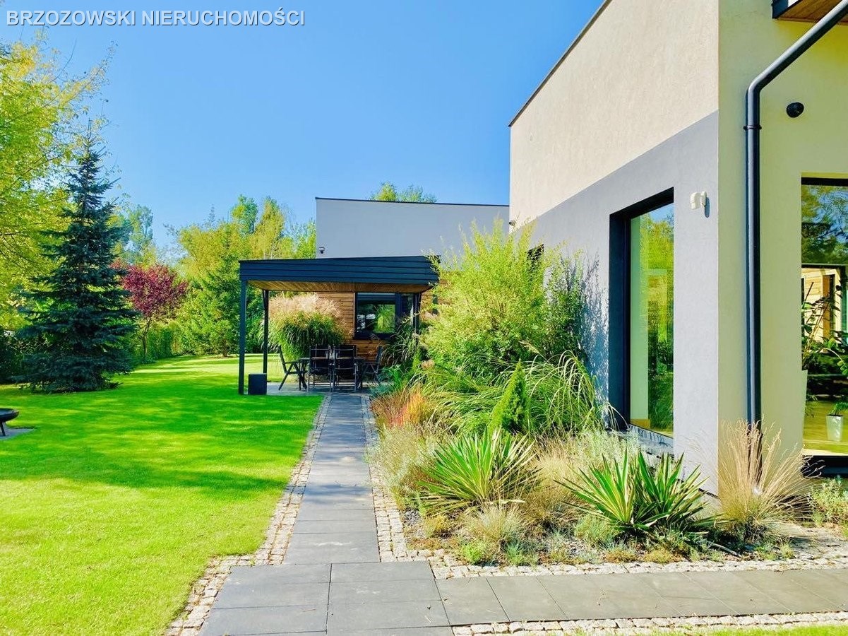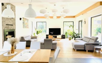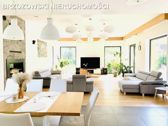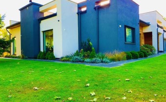 Nowoczesny dom parterowy o powierzchni 305 m2, na działce 2011 m2, zlokalizowany na zamkniętym osiedlu w Konstancinie-Jeziornie, blisko rzeczki "Jeziorka"
