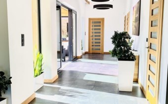 Dom wyposażony jest w rekuperację z GWC, monitoring, alarm, okna antywłamaniowe.