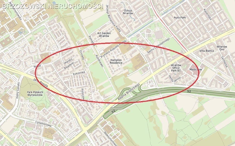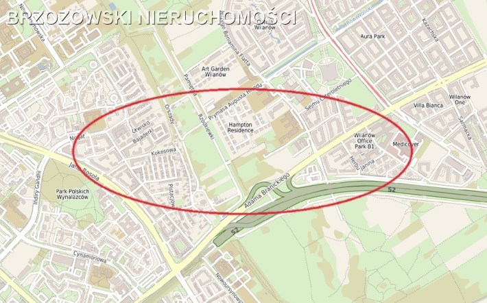 Grunt o powierzchni 5700 m2, zlokalizowany na terenie Miasteczka Wilanów.