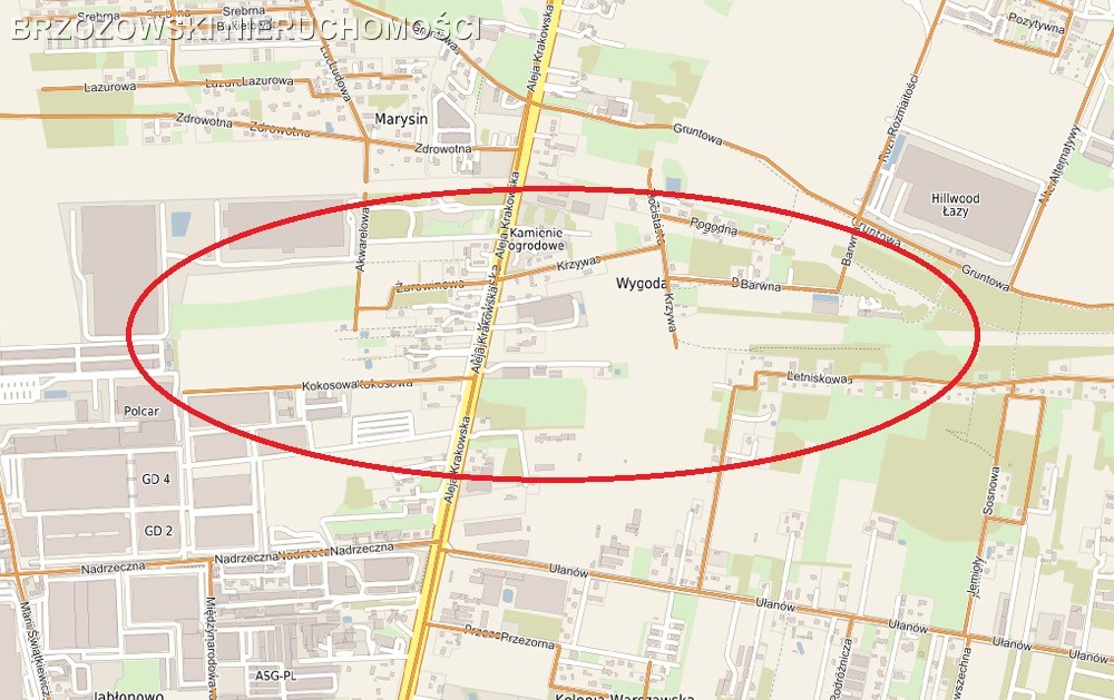 Oferujemy do sprzedaży działkę inwestycyjną o powierzchni 17773 m2, zlokalizowaną w Wólce Kosowskiej (gmina Lesznowola), bezpośrednio przy Alei Krakowskiej.