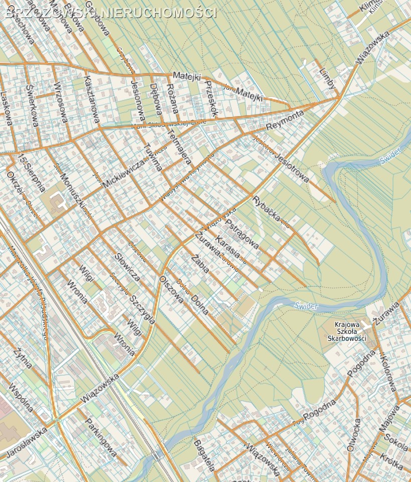 Działka zlokalizowana blisko terenów zielonych, ok. 300 m od rzeki Świder.