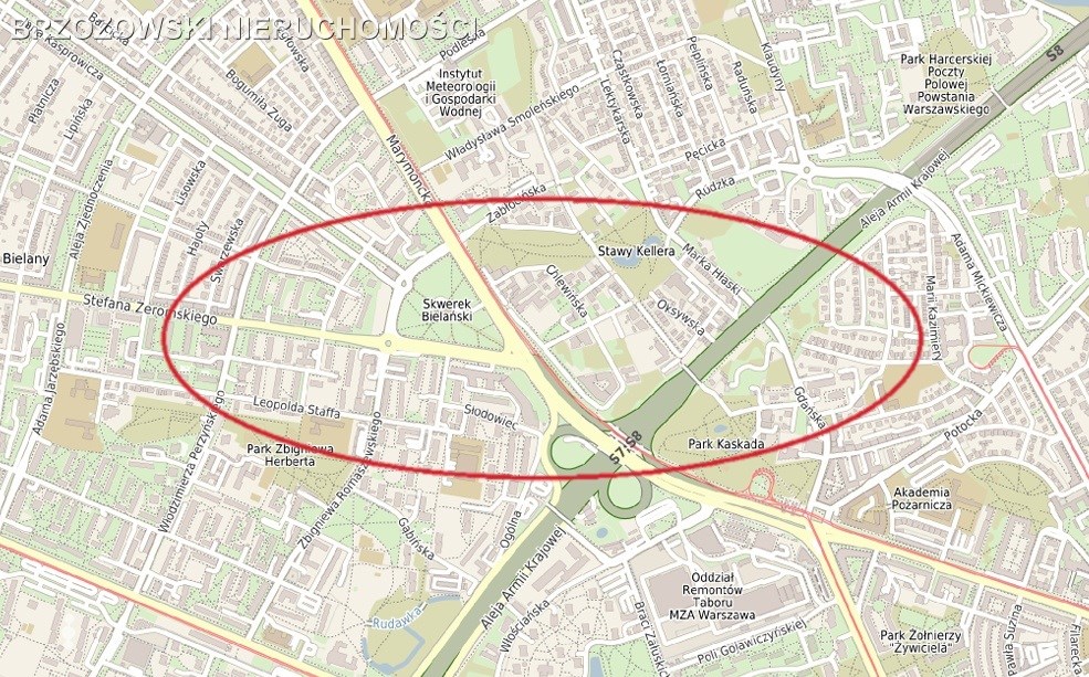 Działka inwestycyjna o powierzchni 1175 m2, zlokalizowana na Bielanach (Marymont), w rejonie ul. Marymonckiej.