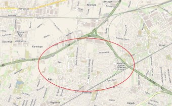 w odległości ok. 1200 m od stacji kolejowej.