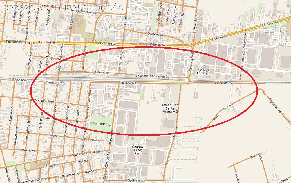 Działka usługowa o powierzchni 4973 m2, zlokalizowana w Duchnicach, gm. Ożarów Mazowiecki, w rejonie ul. Ożarowskiej.