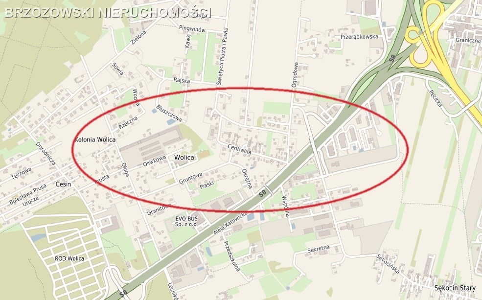 Blisko do wjazdu na S8 w Sękocinie Nowym.