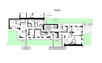 Dla działki przygotowanywany jest projekt budynku wielorodzinnego (willa miejska), obejmujący 7 lokali mieszkalnych o łącznej powierzchni 694 m2, plus garaż wielostanowiskowy.