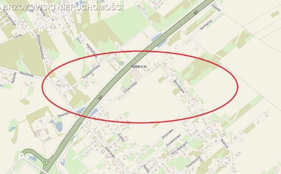 Działka budowlana o powierzchni 1500 m2, zlokalizowana w Robercinie (gmina Piaseczno).