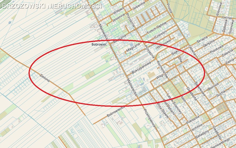 Oferujemy działkę budowlaną o powierzchni 985 m2, zlokalizowaną w Bobrowcu (gmina Piaseczno), w rejonie ulicy Mazowieckiej.