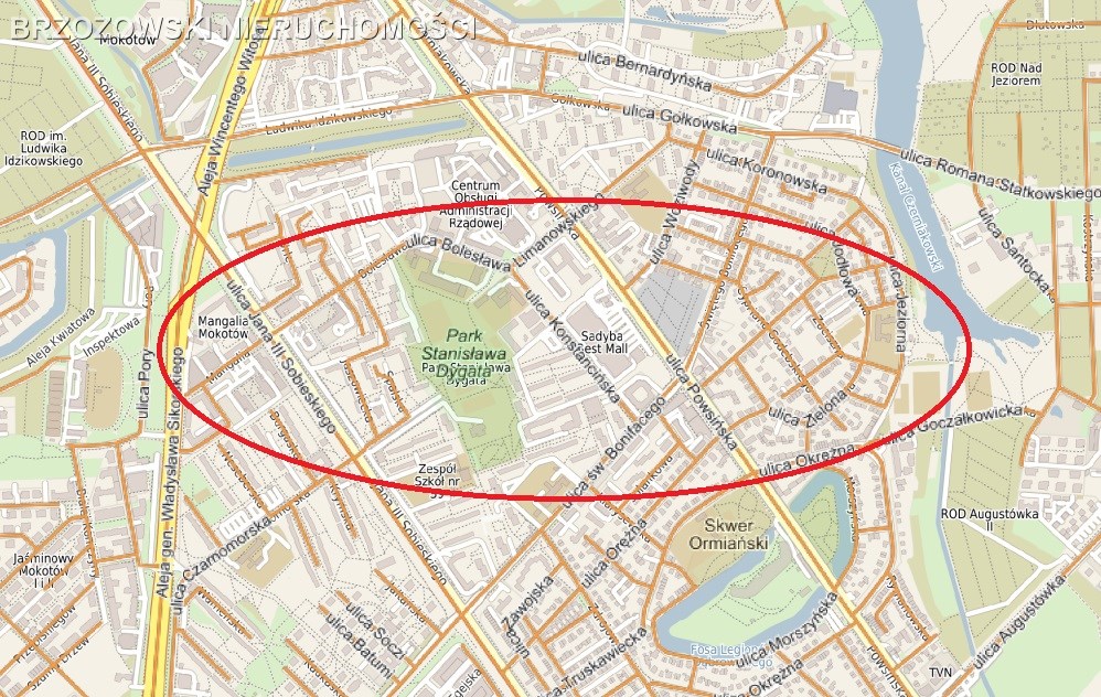 Oferujemy do sprzedaży działkę o powierzchni 1700 m2, zlokalizowana na Sadybie w rejonie Centrum Handlowego Sadyba Best Mall.