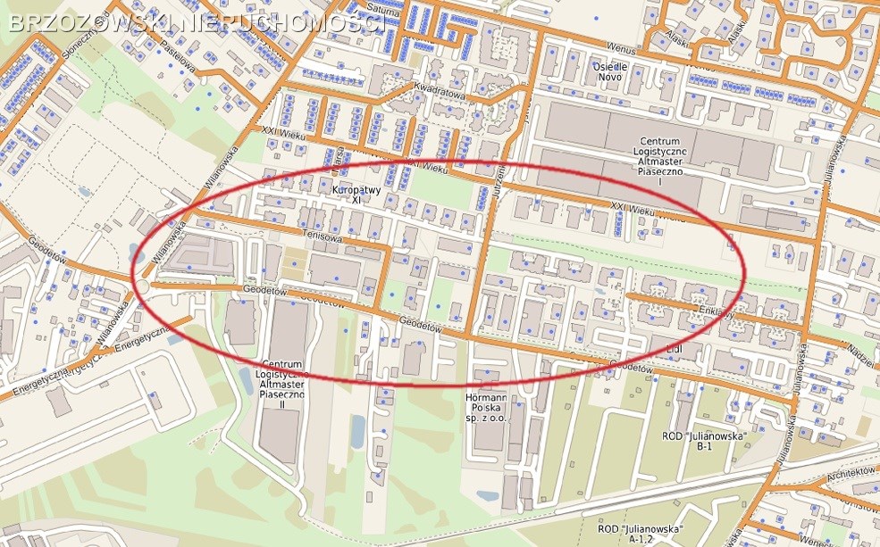 Oferujemy działkę inwestycyjną o powierzchni 2538 m2, zlokalizowaną w Józefosławiu (gmina Piaseczno), w rejonie ul. Geodetów.