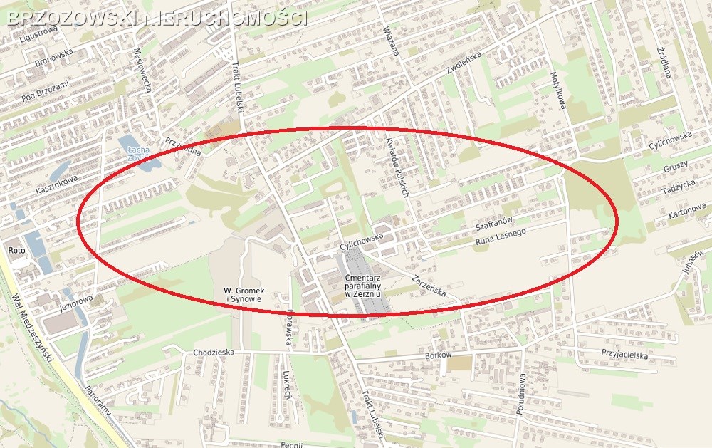 Na sprzedaż teren inwestycyjny o powierzchni 4918 m2, zlokalizowany w Wawrze (Zerzeń), w rejonie ul. Trakt Lubelski.