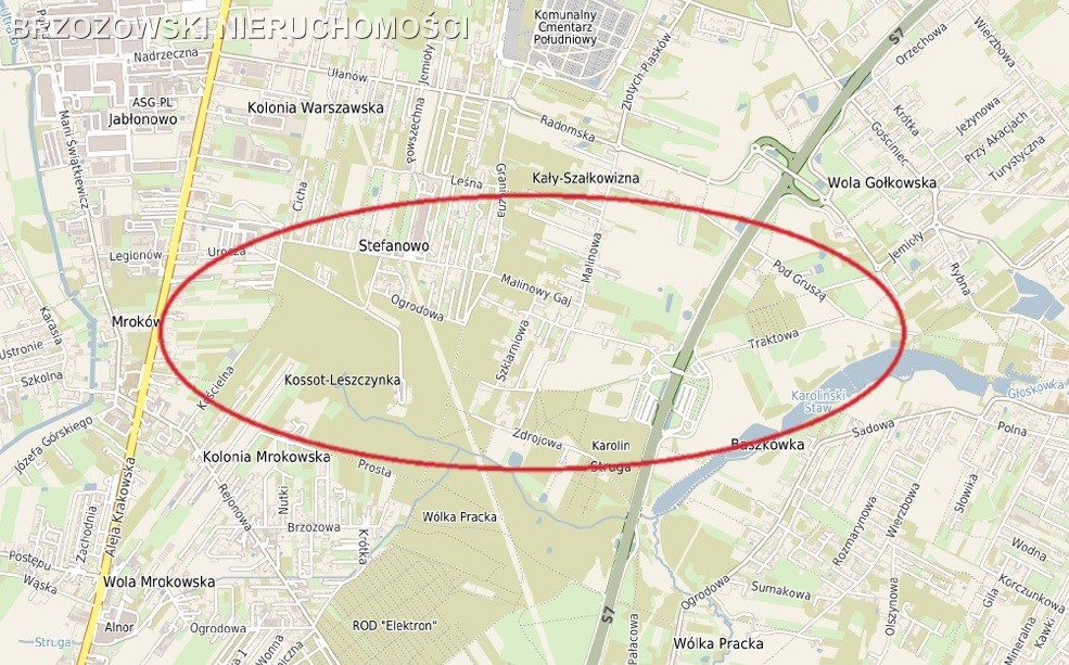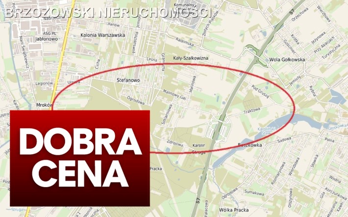 Na sprzedaż działka budowlana o powierzchni 3404 m2, zlokalizowana w Mieszkowie (gmina Piaseczno), w rejonie ulicy Szklarniowej.