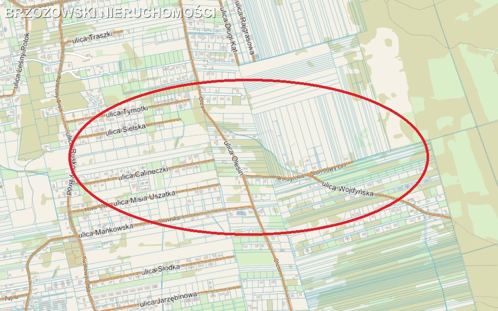 Do sprzedania działka budowlana 1500 m2, zlokalizowana na Białołece (Kobyłka), w rejonie ulicy Wojdyńskiej, w bliskim sąsiedztwie Rezerwatu Łęgi Czarnej Strugi.