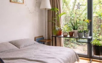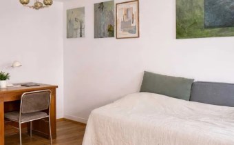 Dwa pokoje od strony wschodniej – z widokiem na zielone patio i piękne brzozy,