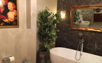 Ekskluzywny apartament wykończony drogimi materiałami, z armaturą najlepszych włoskich i niemieckich firm. Kącik barowy z pełną zabudową wysokiej jakości, wyposażony w zabudowaną lodówkę, zintegrowaną mikrofalę z piekarnikiem, zmywarkę. Łazienka z WC z wanną. Dodatkową przestrzenią jest garderoba. Na podłodze drewno, wykładzina, terakota.