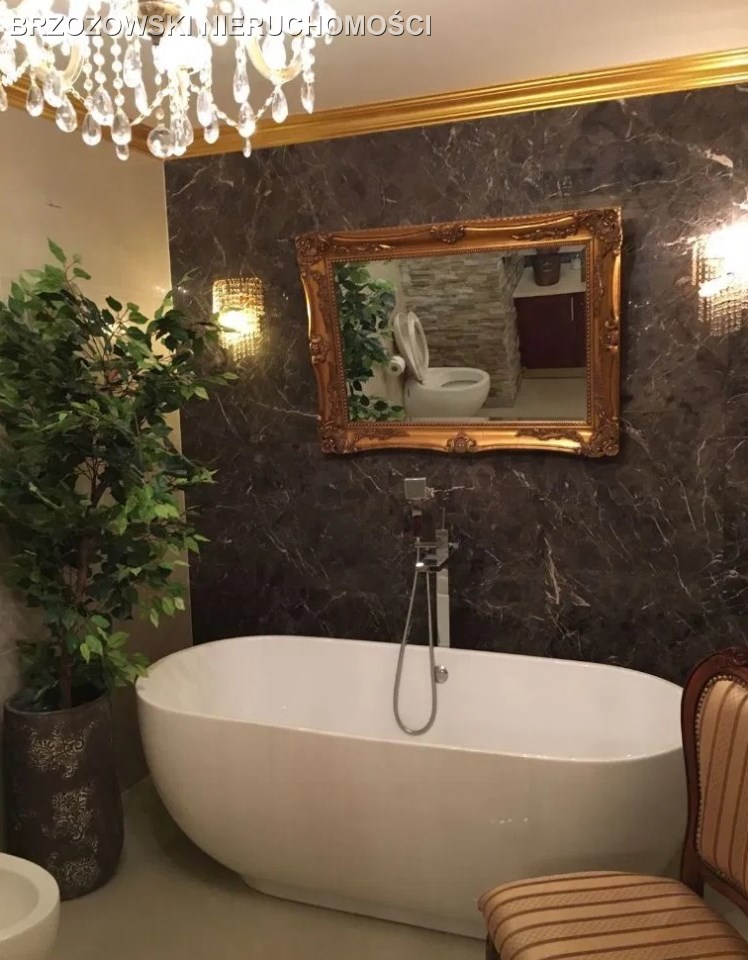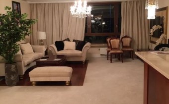 Ekskluzywny apartament wykończony drogimi materiałami, z armaturą najlepszych włoskich i niemieckich firm. Kącik barowy z pełną zabudową wysokiej jakości, wyposażony w zabudowaną lodówkę, zintegrowaną mikrofalę z piekarnikiem, zmywarkę. Łazienka z WC z wanną. Dodatkową przestrzenią jest garderoba. Na podłodze drewno, wykładzina, terakota.