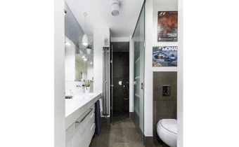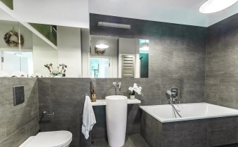 Wygodne i przestronne łazienki wykończone wysokiej klasy materiałami renomowanych marek, takich jak Villeroy & Boch, dodatkowo wyposażone w system nagłośnienia.