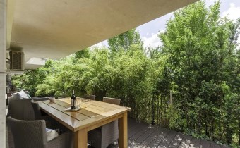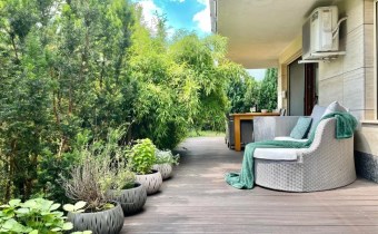 Apartament otacza zorganizowany, intymny ogród, który stanowi idealne miejsce do wypoczynku i spotkań w gronie najbliższych.