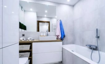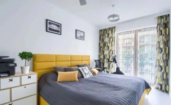 Apartament jest klimatyzowany i wyposażony - m.in. TV 65" 4K, TV 50" 4K w sypialni, sprzęt AGD marki Siemens - piekarnik z mikrofalą, płytę indukcyjną, zmywarkę, lodówkę, okap oraz pralko-suszarkę, klimatyzację LG z możliwością sterowania smartfonem z dowolnego miejsca przez wifi, meble w salonie i sypialni. Ceramika Villeroy&Boch, armatura Grohe.