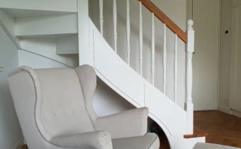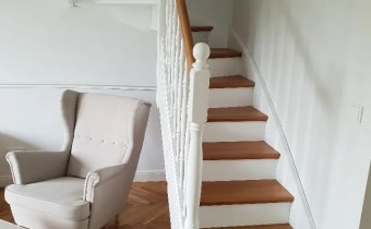 Mieszkanie znajduje się się na drugim piętrze i poddaszu. Powierzchnia mierzona po podłodze to 101 m kw.
