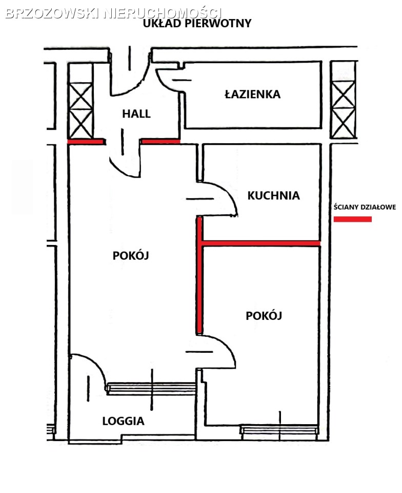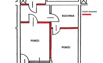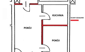 Istnieje możliwość zmiany obecnego układu mieszkania i uzyskania niezależnych dwóch pokoi oraz kuchni, z oddzielnymi wejściami do wszytkich pomieszczeń.