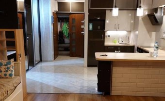 ROZKŁAD: salon z aneksem kuchennym, łazienka, przedpokój.
