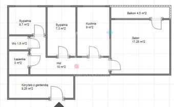 Dodatkowy korytarz 14 m² pomiędzy korytarzem wspólnym a mieszkaniem.