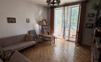 - salon z wyjściem na dużą loggię i widokiem na piękne, stare drzewa