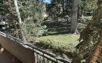 - salon z wyjściem na dużą loggię i widokiem na piękne, stare drzewa